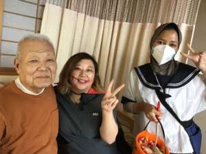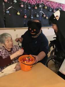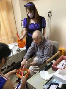 職員さんがお化けに仮装しご利用者様にお菓子をお配りし、ご利用者様とご一緒にお化けと写真を撮りました