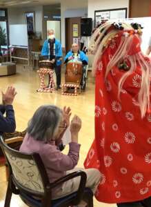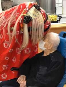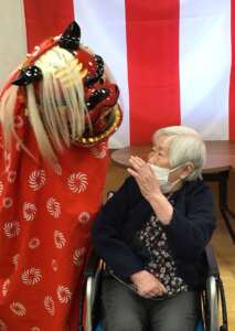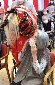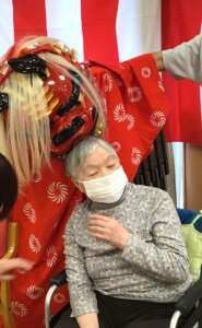 フレールにも獅子舞がやってきまして、皆さん頭を噛んでもらい厄除けをしました。