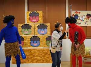 当日は、鬼ヶ島から赤鬼さんと青鬼さんが来てくださいました。